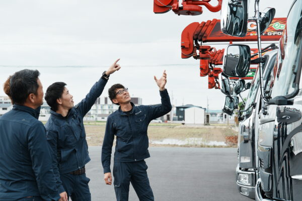 ユニセルロジでは、定期的にクレーンメーカーから専門家を招き、座学や実地研修を実施しています。全ドライバーが、安全な作業範囲や持ち上げられる重量を正しく理解して、安全にお客様の荷物を取り扱えるように、日々取り組みを続けています。