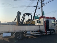 フォークリフトリース業者様からのご依頼により、7tユニックセルフ車(荷台長さ530cm×荷台幅230cm×最大積載量7,000kg)にてフォークリフトを岡山市中区江崎から倉敷市水島まで運搬させていただきました。