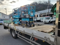 高所作業車リース業者様からのご依頼により、7tユニックセルフ車(荷台長さ554cm×荷台幅232cm×最大積載量7,300kg)にてスカイタワーを倉敷市西中新田から倉敷市上富井まで運搬させていただきました。