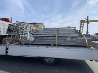 仮設材リース業者様からのご依頼により、7tユニックセルフ車(荷台長さ520cm×荷台幅230cm×最大積載量7,000kg)に仮設材をチャーター常用便(1日)で運搬させていただきました。
