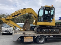 建機リース業者様からのご依頼により、7tユニックセルフ車(荷台長さ535cm×荷台幅228cm×最大積載量7,000kg)にてバックホーを岡山県岡山市から香川県直島町まで運搬させていただきました。