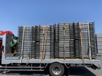 足場材リース業者様からのご依頼により、7tユニックセルフ車(荷台長さ555cm×荷台幅221cm×最大積載量6,800kg)にて足場材を岡山市東区西大寺から津山市川崎まで運搬させていただきました。