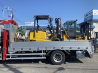 フォークリフトリース業者様からのご依頼により、7tユニックセルフ車(荷台長さ430cm×荷台幅221cm×最大積載量7,300kg)にてフォークリフトを岡山市中区江崎から玉野市槌ヶ原まで運搬させていただきました。