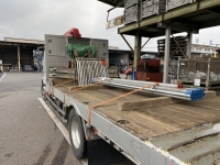 仮設材リース業者様からのご依頼により、7tユニックセルフ車(荷台長さ555cm×荷台幅221cm×最大積載量6,800kg)にて仮設材を倉敷市連島町から岡山市南区古新田まで運搬させていただきました。