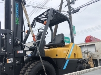 フォークリフトリース業者様からのご依頼により、7tユニックセルフ車(荷台長さ515cm×荷台幅220cm×最大積載量6,900kg)にてフォークリフトを岡山市中区江崎から備前市八木山まで運搬させていただきました。