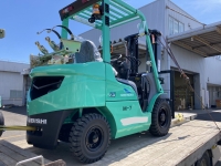 フォークリフトリース業者様からのご依頼により、7tユニックセルフ車(荷台長さ535cm×荷台幅228cm×最大積載量7,000kg)にてフォークリフトを岡山市南区藤田から岡山市東区古都宿まで運搬させていただきました。