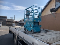 作業車リース業者様からのご依頼により、7tユニックセルフ車(荷台長さ554cm×荷台幅232cm×最大積載7,300kg)にてスカイタワーを倉敷市茶屋町から岡山市南区古新田まで運搬させていただきました。