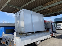 資材リース業者様からのご依頼により、7tユニックセルフ車(荷台長さ530cm×荷台幅230cm×最大積載7,000kg)にて2tトラック用コンテナを倉敷市松江から岡山市東区光津まで運搬させていただきました。