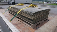 資材リース業者様からのご依頼により、7tユニックセルフ車(荷台長さ530cm×荷台幅230cm×最大積載量6,800kg)にてゴムマットを総社市から岡山市南区浦安南町まで運搬させていただきました。
