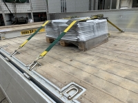 資材リース業者様からのご依頼により、7tユニックセルフ車(荷台長さ530cm×荷台幅230cm×最大積載量7,000kg)にて切板を倉敷市松江から岡山市南区福成まで運搬させていただきました。