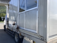 ハウスリース業者様からのご依頼により、7tユニックセルフ車(荷台長さ535cm×荷台幅228cm×最大積載量7,000kg)にてハウスを小田郡矢掛町から倉敷市連島町まで運搬させていただきました。