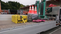 工事製品リース業者様からのご依頼により、7tユニックセルフ車(荷台長さ530cm×荷台幅230cm×最大積載量6,900kg)にて電光掲示板を都窪郡早島町から笠岡市中央町まで運搬させていただきました。